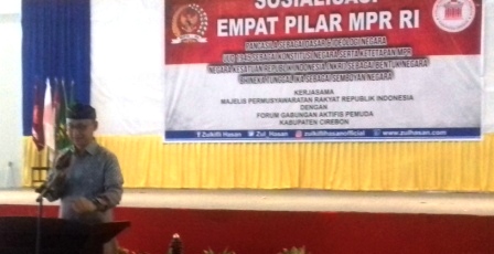 Ketua MPR Zulkipli Hasan, didampingi Sekjen PAN,Edi Suparno disambut petinggi Universitas Muhammadiyah Cirebon Berphoto bersama Ketua Pemuda Muhammadiyah Kab.Cirebon Saat menunggu tiba Ketua MPR RI di Universitas Muhammadiyah Cirebon Media dan LSM photo bersama tim drumband Universita Muhammadiyah Cirebon Sekjend PAN Edi Soeparno menyampaikan salah satu materi Seminar Cirebon Nasional, TG.-Pemaparan materi dalam Seminar Sosialisasi