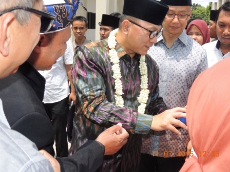 | Ketua MPR Zulkipli Hasan, didampingi Sekjen PAN,Edi Suparno disambut petinggi Universitas Muhammadiyah Cirebon |