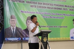 Cirebon Kota,G.- Pemerintah Kota Cirebon menegaskan pentingnya sinergi antara pemerintah daerah dan tokoh agama dalam menghadapi berbagai tantangan sosial kemasyarakatan. Hal tersebut disampaikan Wali Kota Cirebon, Effendi Edo, saat menghadiri Pelantikan dan Rapat Kerja Majelis Ulama Indonesia (MUI) Kota Cirebon Masa Khidmat 2025–2030 di At-Taqwa Center Kota Cirebon, Selasa (14/4/2026). Dalam kesempatan tersebut, Wali Kota