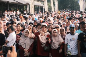 Acara jalan santai juga diisi dengan pembagian doorprize dan hiburan rakyat. (cakra)