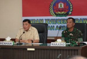 Dalam kesempatan ini, Menhan dalam agendanya melakukan peninjauan sarana dan prasarana fasilitas yang tersedia di Rindam XVII/Cenderawasih.